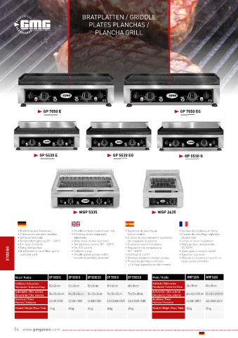 • Bratflächen je nach Mod. gerillt • Collection tray 50° - 300°C • Interrupteur marche / arrêt